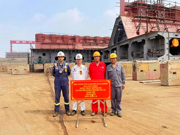 On June 14, 2022, the keel laying of one 210,000 DWT Bulk Carrier bearing builder's hull no. 0120845 has been carried out successfully by New Times Shipbuilding Co., Ltd.. Representatives from shipyard, EPS Site Manager Mr. Ni Jie together with the representatives from ABS classification society attended and witnessed this event.