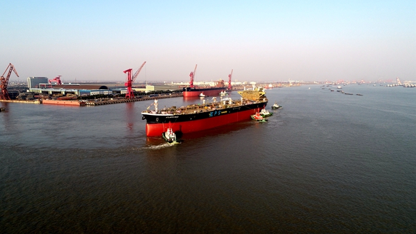 On December 16, No.26 110,000 DWT CRUDE/PRODUCT Oil Tanker launched successfully from NTS Drydock. Our CEO Mr. Liu Haijin, Executive General Manger Mr. Zhang Yuyong, representatives from the Owner EPS and Class ABS attended and witnessed the ceremony together.