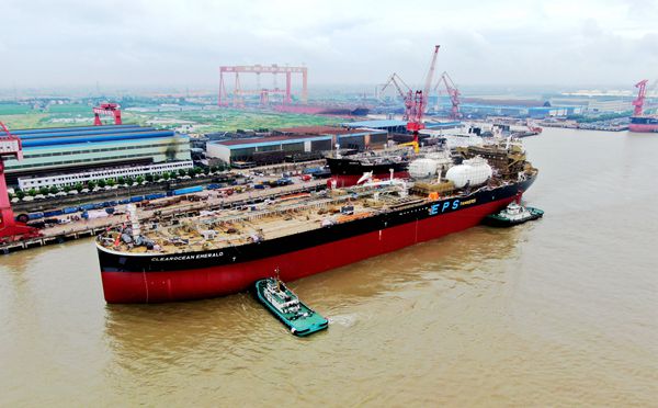 On August 16, 2021,  one 110,000 DWT Product/Crude Oil Tanker bearing builder's hull no.0311127 launched successfully from Drydock No.3. Our CEO Mr. Liu Haijin, Executive Deputy General Manager Mr. Zhang Yuyong, representatives from EPS Site Manager Mr. Ni Jie together with the site members and representatives from ABS classification society attended and witnessed this event.