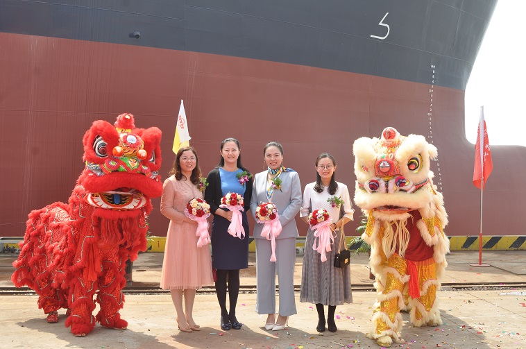 On 24th April, 2019, we held naming ceremony for four units of 50,000 Product Oil/ Chemical Tankers with Hull Nos.0305008/09/10/11 those are built for Navig8 and OFI. Our CEO Mr.Liu Haijin, Chairman of Navig8 Mr.Gary, Vice President of COSCO Shipping Development Mr.Su Guang, and President of China KR Mr.Kang H S were present at this ceremony. Godmother Ms.Zhao Ying named the vessel 0305009 for "Navig8 Gallantry", Godmother Ms.Wei Tingting named the vessel 0305010 for "Navig8 Guard", God mother Ms.Xu Ying named the vessel 0305008 for "Navig8 Grace" and Godmother Ms. Wu Jing named the vessel 0305011 for "Navig8 Guide".