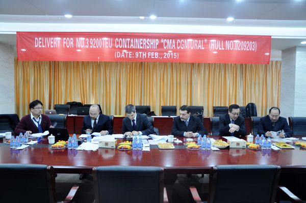 Feb. 9th, 2015, Naming ceremony for No.3 9200 TEU Containership was held at the wharf of NTS. On the same day, delivery documents for this ship were successfully signed between Shipyard and the Contracted Buyer, CIMC, whom the ship was delivered to.