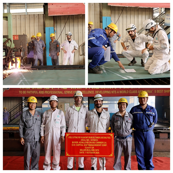 On October 7, 2025, the steel cutting of one 155,500 DWT LNG Dual Fuel Crude Oil Tanker bearing builder's hull no. 0315872 was carried out successfully by New Times Shipbuilding Co., Ltd.. The representatives from shipyard, Captial Site Team and LR classification society attended and witnessed this event.