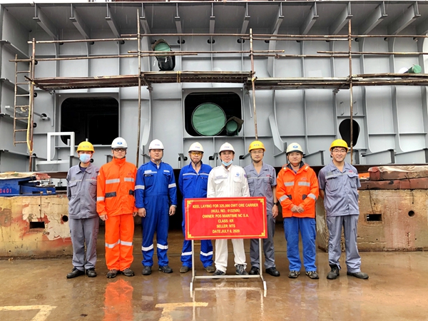 On July 6, 2020, the keel laying of No.5 325,000 DWT Ore Carrier has been carried out successfully by New Times Shipbuilding Co., Ltd. Our Deputy General Manger Mr. Zhu Hangang and representatives from the owner Pan Ocean and KR classification society attended this event.