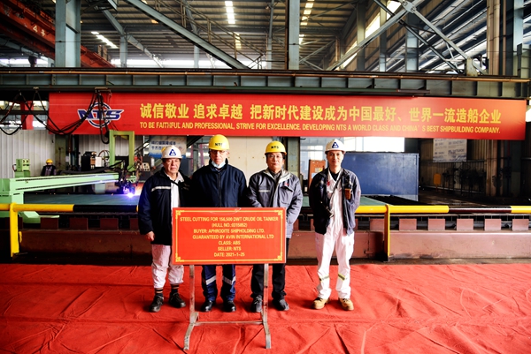 On 25 January, 2021, the steel cutting ceremony of No.52 156,500 DWT Crude Oil Tanker has been carried out successfully by New Times Shipbuilding Co., Ltd. Our Executive General Manager Mr. Zhang Yuyong and the representatives from the owner Avin International LTD. and ABS classification society attended this event.