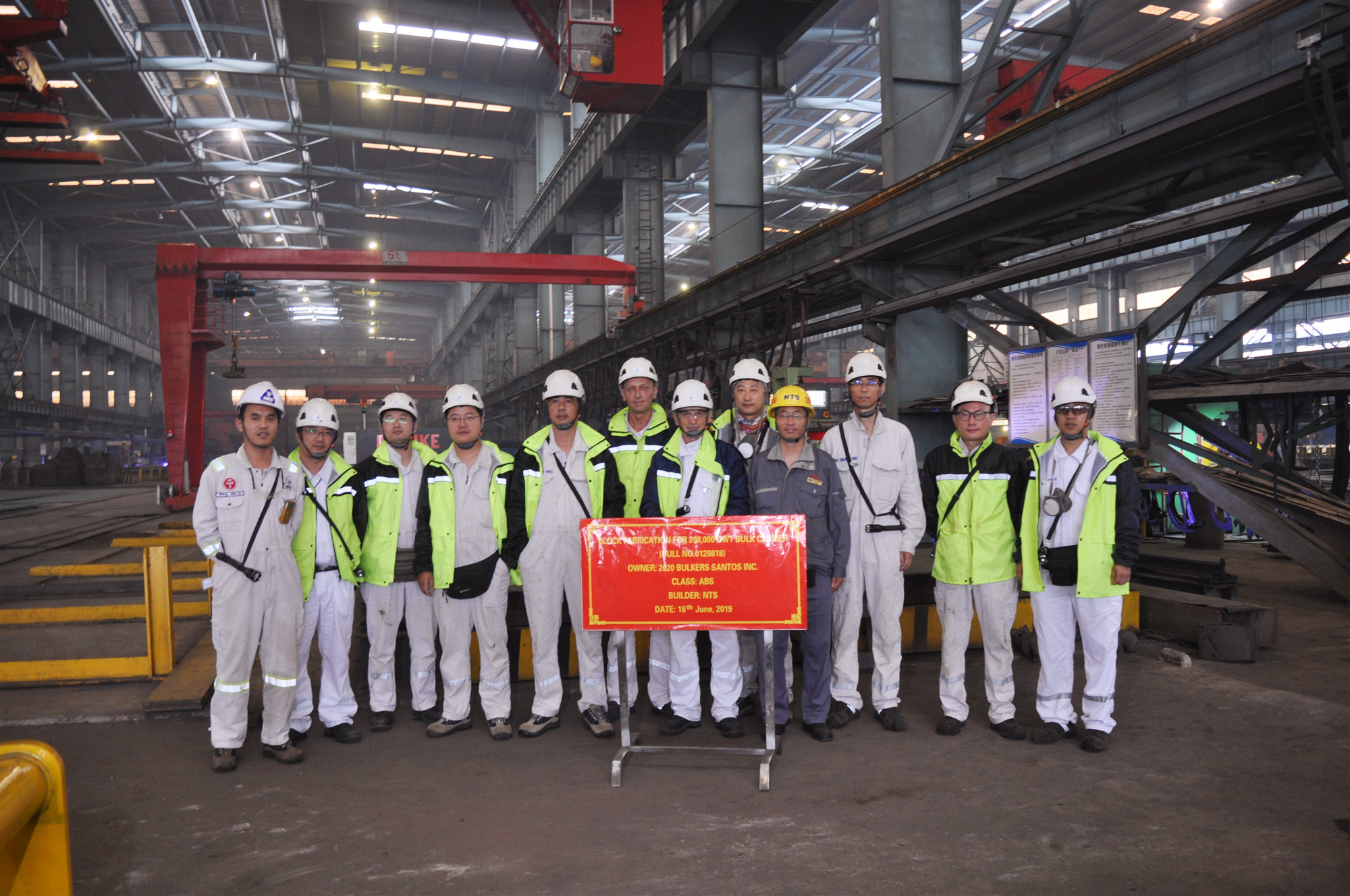 On 18 June, 2019, the block fabrication of No.18 208,000DWT Bulk Carrier was carried out at the cutting workshop of NTS. Our General Manager Assistant Mr. Ding Baiying and representatives from the owner 2020 Bulkers and ABS classification society attended this event.