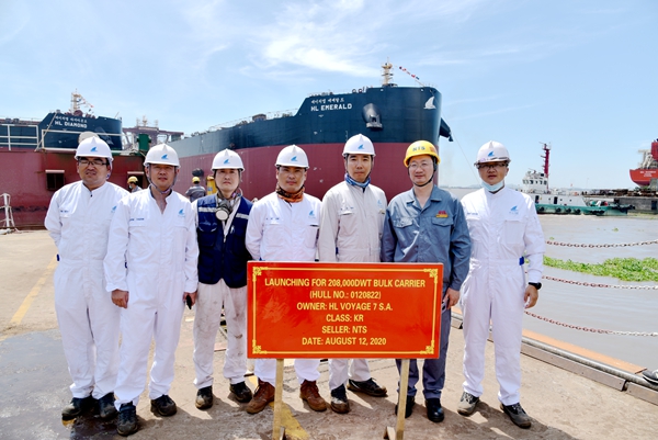 On August 12, No.21 and No.22 208,000 DWT Bulk Carriers launched successfully from NTS Drydock successively. Our CEO Mr.Liu Haijin, Executive General Manger Mr. Zhang Yuyong and the representatives from the Owner H-Line Shipping and KR Class attended and witnessed the ceremony together.