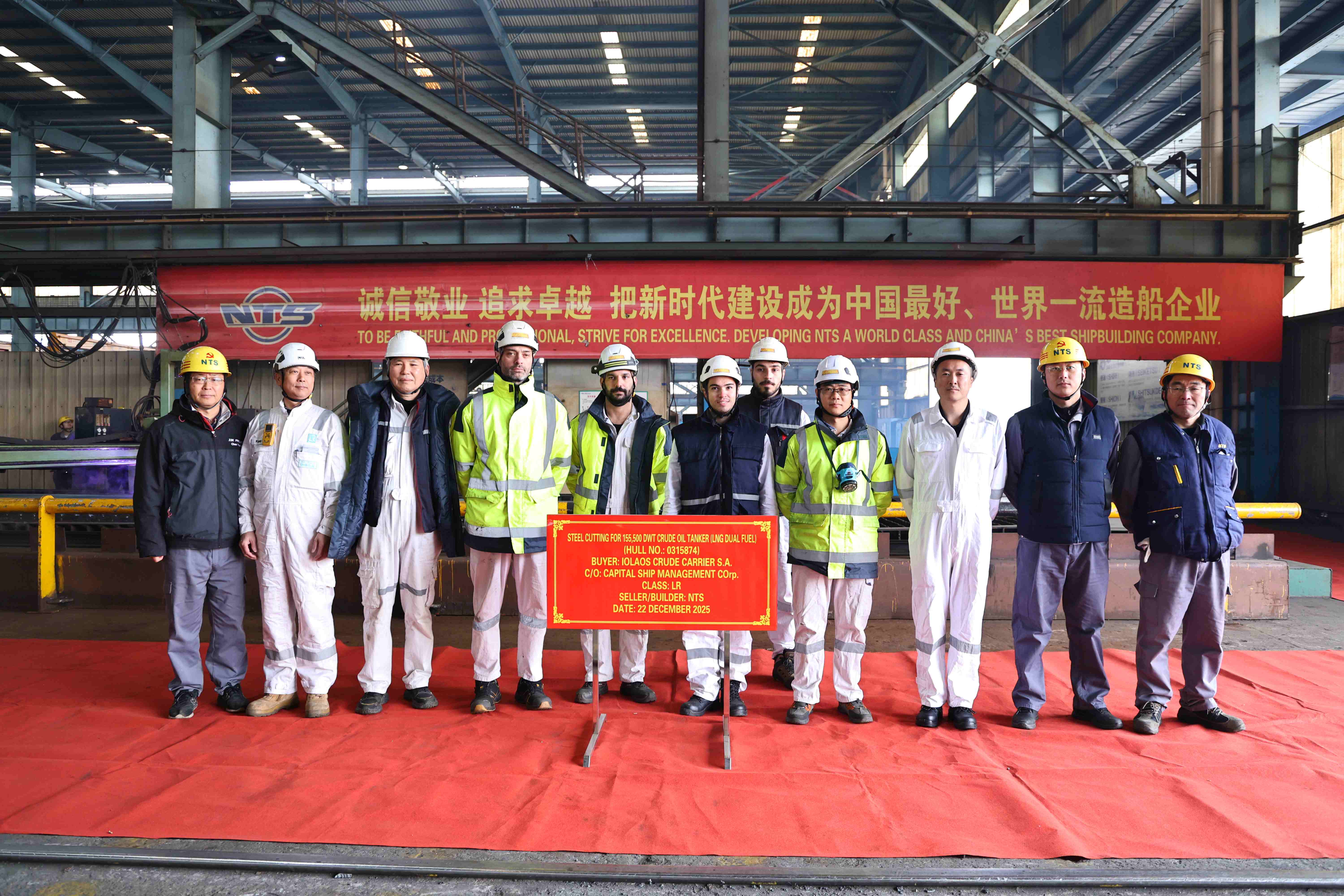 On December 22, 2025, the steel cutting of one 155,500 DWT LNG Dual Fuel Crude Oil Tanker bearing builder's hull no.0315874 was carried out successfully by New Times Shipbuilding Co., Ltd.. The representatives from shipyard, Capital Site Team and LR classification society attended and witnessed this event.