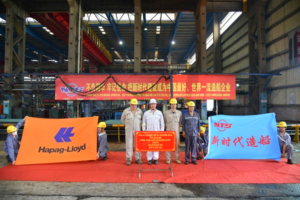 On June 30, 2023, the steel cutting of one 13,000 TEU Container Vessel bearing builder's hull no.0213004 has been carried out successfully by New Times Shipbuilding Co., Ltd.. The representatives from shipyard, Hapag-Lloyd and BV Classification Society attended and witnessed this event.