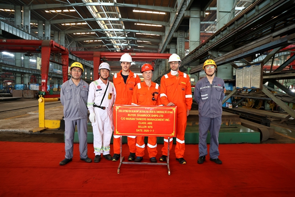 On July 7, 2025, the steel cutting of one 155,500 DWT LNG Dual Fuel Crude Oil Tanker bearing builder's hull no. 0315844 has been carried out successfully by New Times Shipbuilding Co., Ltd.. The representatives from shipyard, Maran Site Team and ABS classification society attended and witnessed this event.