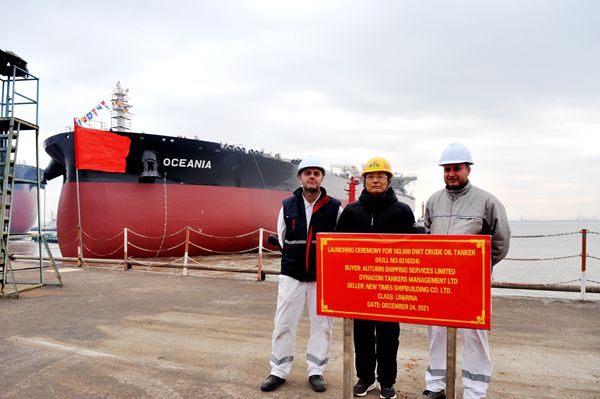 On December 24, 2021, the launching ceremony of two units of 163,000 DWT Crude Oil Tankers with  Hull Nos.0316323 and 0316324 has been carried out successfully by New Times Shipbuilding Co., Ltd. Our CEO Liu Haijin, Executive Deputy General Manager Mr. Zhang Yuyong and representatives from the owner DYNACOM site office, BV, LR and RINA Classification Societies attended and witnessed the ceremony together.