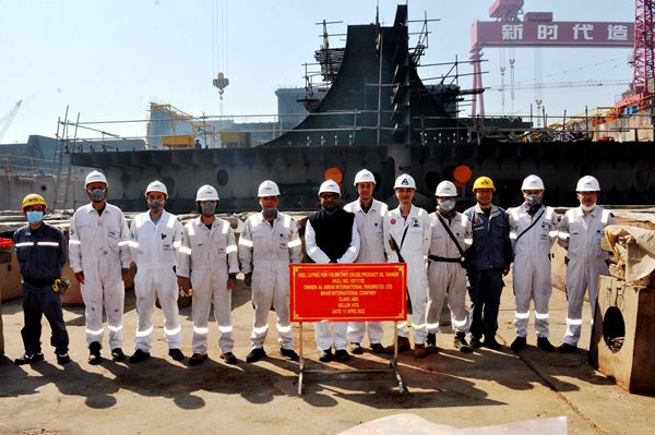 On April 11, 2022, the Keel Laying Ceremony of one 110,000 DWT CRUDE/PRODUCT OIL TANKER with  Hull No.0311112 has been carried out successfully by New Times Shipbuilding Co., Ltd. The representatives from the owner BIHAR INTERNATIONAL COMPANY and ABS Class attended and witnessed the ceremony together.