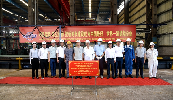 On August 31, 2020 , the Steel Cutting Ceremony of two units of 50,000 DWT Product Oil/Chemical Tankers (IMO Type 2) with Hull Nos.0405024 and 0405025 has been carried out successfully by New Times Shipbuilding Co., Ltd. Our Deputy General Manager Mr.Zhu Hangang and representatives from the owner, DNV-GL Class and CCS Class attended and witnessed the ceremony together.