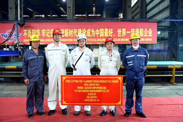 On July 10, 2023, the steel cutting of one 115,000 DWT Crude/Product Oil Tanker bearing builder's hull no.0311541 has been carried out successfully by New Times Shipbuilding Co., Ltd.. The representatives from shipyard, Frontline and LR Classification Society attended and witnessed this event.