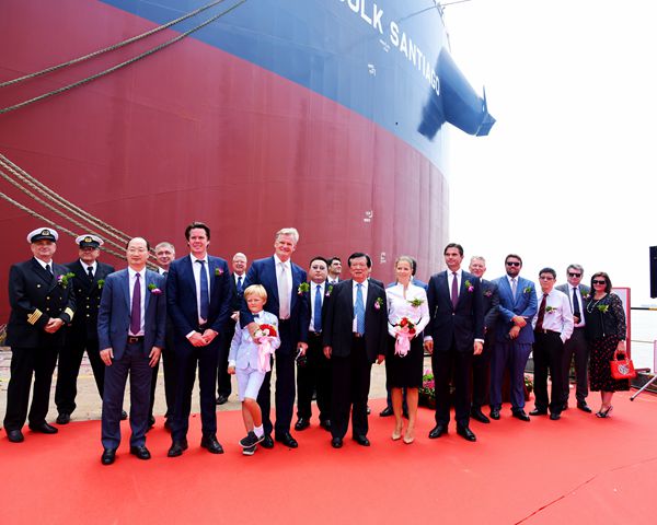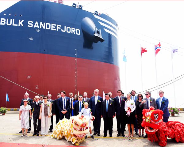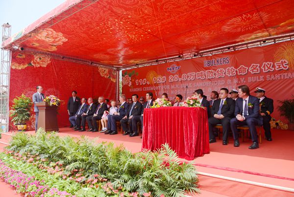 On 7 August, 2019, we held naming ceremony for two units of 208,000 DWT Bulk Carriers with Hull Nos.0120811 and 0120812 that are built for 2020 Bulkers Ltd. Our Chairman Mr. Yuan Kaifei, CEO Mr.Liu Haijin, Board Director Mr. Yuan Heng, Executive General Manger Mr. Zhang Yuyong, Assistant General Manager Mr. Xu Zhenyu, Shareholder of 2020 Bulkers Mr.Olav Midelfart Trøim and CEO of 2020 Bulkers Mr. Magnus Halvorsen, and all other VIP guests were present at this ceremony. Sponsor Mr.Olav Midelfart Trøim named the vessel 0120811 for "Bulk Sandefjord" and Godmother Mrs.Julie Ba Flaaten Halvorsen named the vessel 0120812 for "Bulk Santiago".