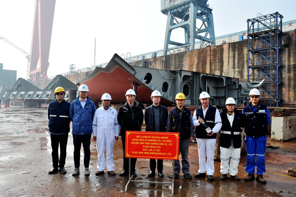 On January 28, 2021 , the Keel Laying Ceremony of four units of 50,000 DWT Product Oil/Chemical Tankers (IMO Type 2) with Hull Nos.0405024/25/26/27 has been carried out successfully by New Times Shipbuilding Co., Ltd. Our Deputy General Manager Mr.Zhu Hangang and representatives from the owner, DNV-GL Class and CCS Class attended and witnessed the ceremony together.