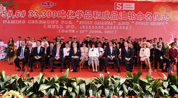 n June 15, the naming ceremony of No.5 and No.6 33,000 DWT Product Oil and Chemical Tankers were held ceremoniously in our shipyard. These two vessels are named as " STOLT  CALLUNA " and " STOLT  EBONY" respectively.