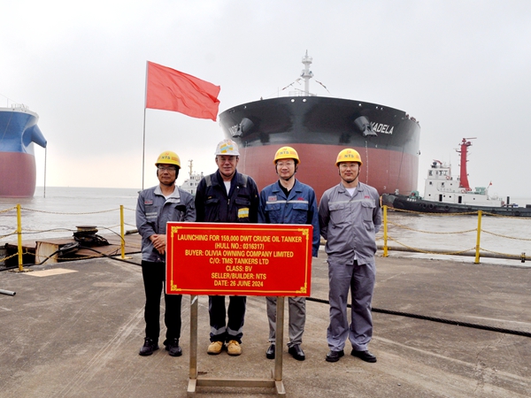 6月26日清晨,公司3#船塢區(qū)域,16#17#159000噸原油船漂浮在船塢內(nèi),船舶下水前期準(zhǔn)備工作有條不紊地進(jìn)行著,隨著海事拖輪編隊(duì)完成,船舶下水工作正式啟動(dòng),在各方協(xié)同作業(yè)下,兩艘船舶依次駛出船塢,船舶下水大節(jié)點(diǎn)目標(biāo)順利實(shí)現(xiàn),這兩艘船舶成功下水,標(biāo)志著2024年上半年3#船塢4個(gè)塢期的下水大節(jié)點(diǎn)圓滿提前完成。