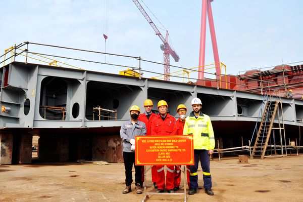 3月14日上午,公司分別在東區(qū)鋼加車間、新區(qū)大塢內(nèi)舉行開工點火、進塢合攏儀式,40#115000噸油船船體零部件點火切割預制;56#156500噸油船和26#210000噸雙燃料散貨船船體分段進塢合攏搭載,一天內(nèi)順利實現(xiàn)三大節(jié)點。