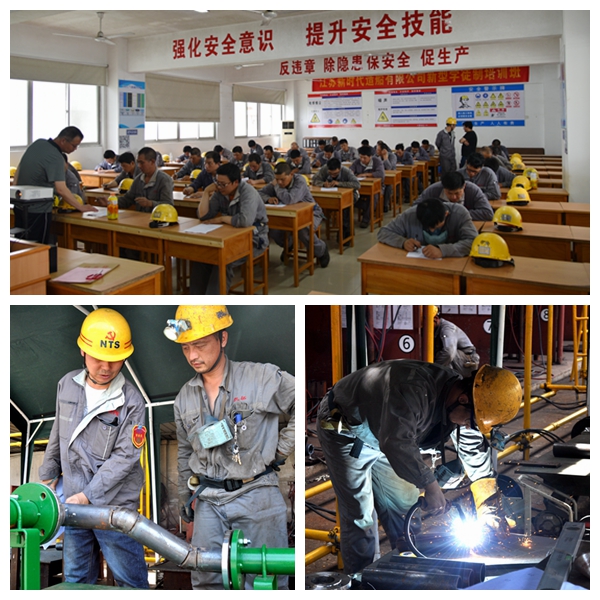 技能比武大賽共分為基礎(chǔ)理論和實(shí)踐操作競(jìng)賽兩大項(xiàng)目,為開(kāi)展好技能比武大賽,賽前制定了實(shí)施方案,明確了活動(dòng)流程、評(píng)分規(guī)則、競(jìng)賽紀(jì)律、考評(píng)要求、成績(jī)公示和獎(jiǎng)勵(lì)措施等辦法和要求。6月22日下午,機(jī)裝部、甲裝部和居裝部等部門共39名選手參加了船舶管工理論知識(shí)競(jìng)賽。理論競(jìng)賽完畢后,隨即開(kāi)展了根據(jù)現(xiàn)場(chǎng)材料和設(shè)計(jì)要求,進(jìn)行放樣繪圖比賽。6月29日,在教育科西區(qū)培訓(xùn)場(chǎng)地,首批居裝部、甲裝部選手開(kāi)展了按圖校管和安裝的實(shí)踐操作比賽。為達(dá)到以賽促學(xué)的活動(dòng)效果,考評(píng)人員現(xiàn)場(chǎng)為選手作品進(jìn)行一一點(diǎn)評(píng),并進(jìn)行打分。7月6日,機(jī)裝部選手實(shí)踐操作比武如期舉行。