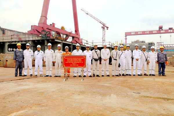 6月23日上午,公司在3#塢區(qū)域舉行船舶進(jìn)塢合攏儀式,5#6#8100箱LNG雙燃料動(dòng)力集裝箱船船體分段開(kāi)始進(jìn)塢搭載建造。