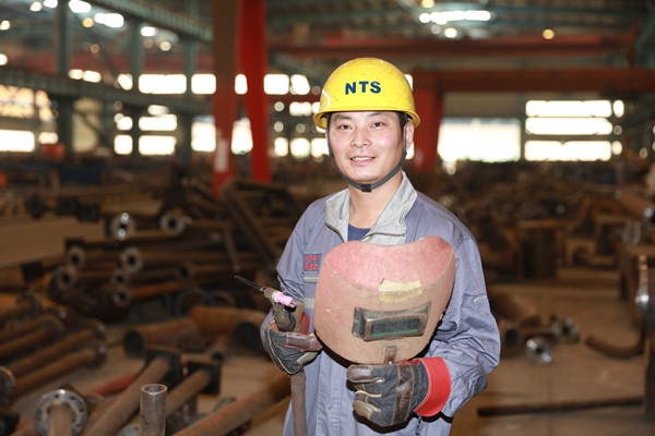 聞炳紅,1997年,職校畢業(yè),2002年進(jìn)入公司,成為一名焊接學(xué)徒工,為早日學(xué)有所成,他心無(wú)旁騖地跟在師父后面,一招一式地看,一點(diǎn)一滴地學(xué),握焊鉗的手懸麻了,蹲著的腰腿酸了,兩條手臂被飛濺的焊花、滾燙的藥渣灼得傷痕累累,強(qiáng)烈的焊光刺得眼腫淚流,正是這“痛并快樂(lè)著”的艱苦訓(xùn)練和日復(fù)一日地觀察琢磨,短短數(shù)月他就基本掌握了一般的焊接技術(shù)。俗話說(shuō):師父領(lǐng)進(jìn)門(mén),修行在個(gè)人。職校的學(xué)習(xí)經(jīng)歷以及在機(jī)械識(shí)圖方面的優(yōu)勢(shì),又讓聞炳紅自信倍增,懷揣著“既懂識(shí)圖又會(huì)燒焊”的夢(mèng)想,愛(ài)上了焊接這個(gè)職業(yè),焊接技藝日益長(zhǎng)進(jìn)。