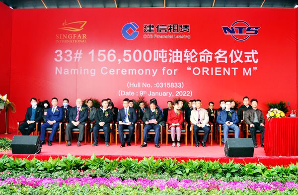 9日下午1:30,公司在東區(qū)碼頭隆重舉行船舶命名儀式,33#156500噸油船被圣母鈕文玨女士成功命名為“ORIENT M”號。主持命名儀式時張玉永表示:取得今天的豐碩成果離不開現(xiàn)場船東代表們精心工作,也離不開英國勞氏船級社現(xiàn)場驗船師們專業(yè)檢驗的技術(shù)支持,請接受我們最誠摯的感謝和衷心地祝福。