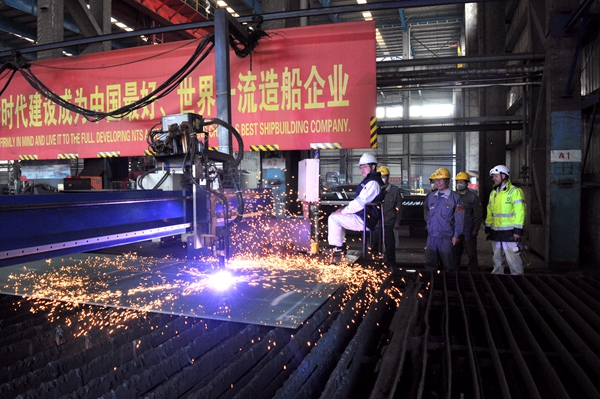 3月27日上午,公司在鋼加車間東區(qū)一跨舉行船舶點(diǎn)火開(kāi)工儀式,3#13000箱集裝箱船船體結(jié)構(gòu)件開(kāi)始切割預(yù)制。公司生產(chǎn)管理負(fù)責(zé)人陳月鋒、質(zhì)量管理負(fù)責(zé)人秦峰與船東Hapag-Lloyd公司代表出席活動(dòng)。