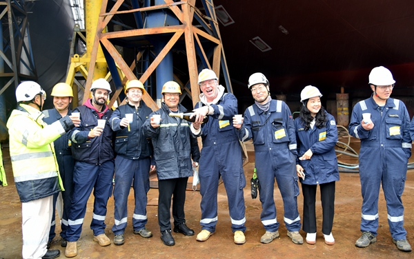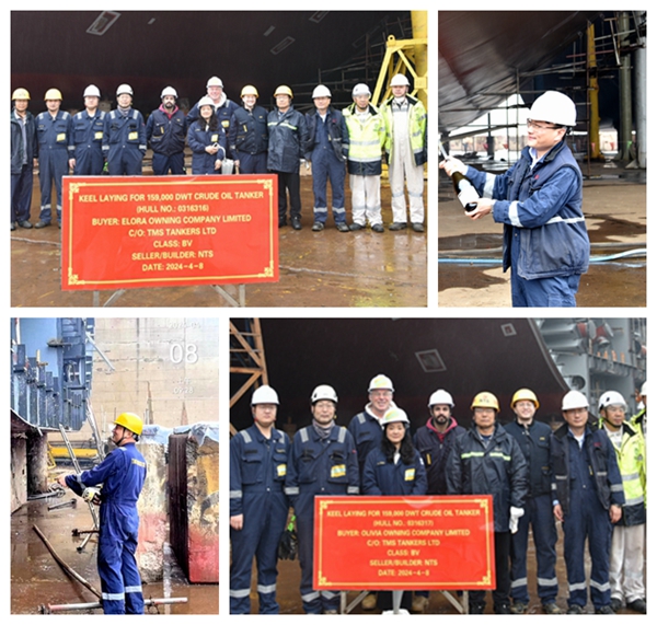 4月8日上午,公司在3#船塢區(qū)域舉行船舶進(jìn)塢合攏儀式,16#17#159000噸原油船的船體分段開始合攏搭載。常務(wù)副總經(jīng)理張玉永與希臘船東TMS代表等嘉賓出席活動(dòng),該船東目前在我們企業(yè)訂購(gòu)了4艘159000噸原油船,此次上臺(tái)的是其中的第1、2艘船舶。