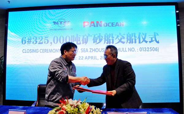 4月22日上午,公司在辦公樓八樓會議室舉行船舶交付簽字儀式,常務(wù)副總經(jīng)理張玉永與韓國船東泛洋海運公司代表Nak Jin Choi共同簽署交船文本,6#325000噸超大型礦砂船正式交付運營。至此,韓國船東泛洋海運公司訂制的6艘325000噸超大型礦砂船項目完美收官。韓國船東泛洋海運公司代表Nak Jin Choi表示:“新時代造船建造船舶產(chǎn)品的速度和質(zhì)量都令人非常滿意,希望以后有機(jī)會加大進(jìn)一步合作,共同建造更綠色、環(huán)保、高效的船舶產(chǎn)品”。
