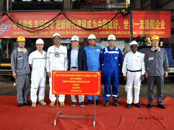 生產(chǎn)管理部、質(zhì)量管理部、營銷部等相關(guān)人員分別與船東國銀金租、新加坡船東Navig8代表出席活動,見證船舶開工建造。36#50000噸Ⅱ類化學(xué)品船的船東是國銀金租;47#50000噸Ⅱ類化學(xué)品船是新加坡船東Navig8訂制的6艘船舶中的第2艘。