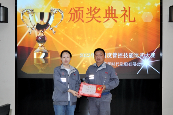 10月25日上午,公司在新區(qū)辦公樓一樓會議室舉行頒獎儀式,工會副主席朱潔分別為在“2023年度精度管控技能大比武”活動中獲獎的分段制造部徐文波等頒發(fā)了榮譽(yù)證書及獎金。