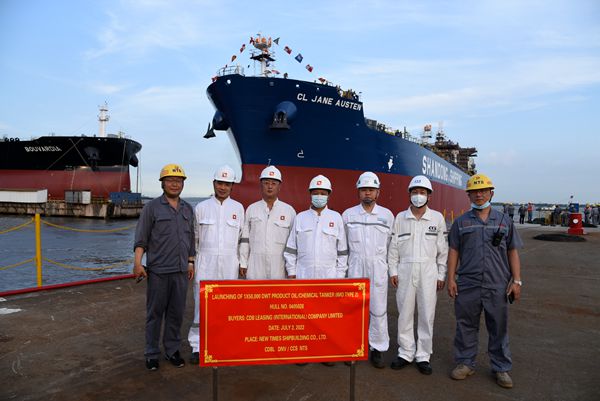 7月2日,公司1#塢區(qū)域12#110000噸油船、28#50000噸Ⅱ類化學(xué)品船相繼駛出船塢,停至舾裝碼頭,完成下水節(jié)點(diǎn)目標(biāo),進(jìn)入碼頭舾裝調(diào)試工序。董事長袁凱飛、總經(jīng)理劉海金、常務(wù)副總經(jīng)理張玉永等公司領(lǐng)導(dǎo)與兩船的船東代表、船級社代表一起見證了下水全過程。
