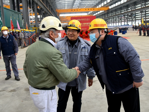2月10日上午,公司首制0120841船LNG燃料艙開工儀式隆重舉行,常務(wù)副總經(jīng)理張玉永主持儀式,公司領(lǐng)導(dǎo)袁衡、鄭忠、徐震宇、劉鋒與船東喜馬拉雅公司代表Davor Radic、公司相關(guān)部門負(fù)責(zé)人等嘉賓出席活動(dòng),共同剪彩,并祝賀公司首制燃料艙順利開工建造。