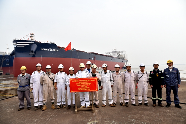 船東EPS公司目前在我們企業(yè)訂有4艘110000噸油船和11艘210000噸雙燃料動力散貨船、7艘7000箱集裝箱船、6艘50000噸化學(xué)品船和2艘155500噸雙燃料油船,此次下水的是210000噸雙燃料動力散貨船系列船中的第9艘船舶;船東喜馬拉雅公司目前在我們企業(yè)訂有12艘210000噸雙燃料動力散貨船,此次下水的也是210000噸雙燃料動力散貨船系列中的第9艘船舶。