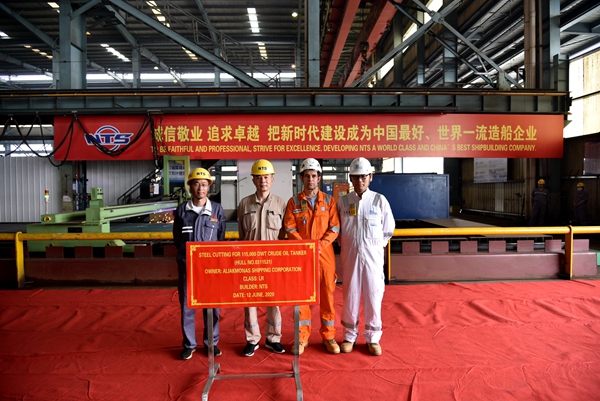 6月12日,公司在鋼加車間內(nèi)舉行船舶開工點火儀式,總經(jīng)理助理丁柏英與31#115000噸、68#158000噸油船的船東代表、船級社代表共同出席活動,31#115000噸、68#158000噸油船的船體零部件開始制作。