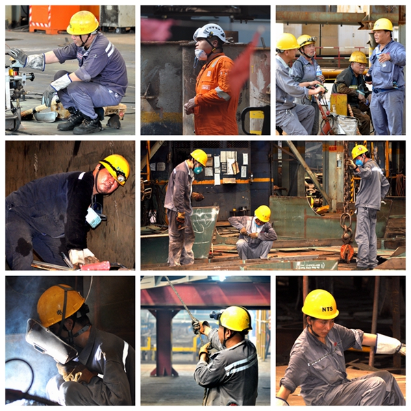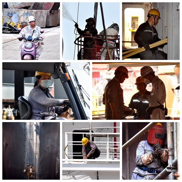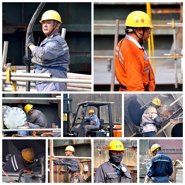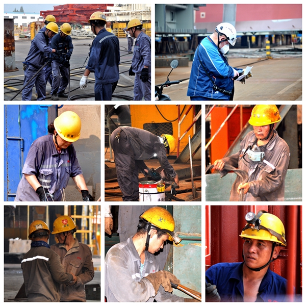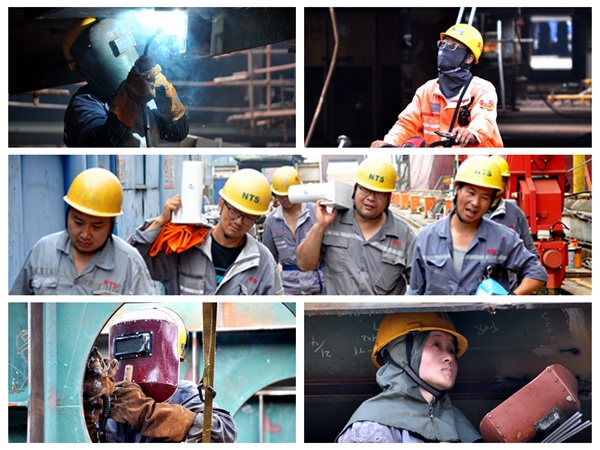車間、外場、塢內、碼頭、艙室、甲板上……電焊工人握著焊槍挑戰(zhàn)熱度;腳手工人擰著螺絲勇攀高度;搭載工人比拼合攏準度;油漆工人精準把握涂層厚度;運輸工人確保運輸速度;金加工人拿著卡尺把握精度、后道部門員工調試中趕進度……,他們用熟練的技術和堅韌的毅力,為每一個生產(chǎn)節(jié)點賦能發(fā)力。