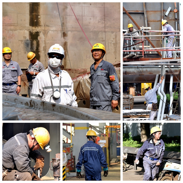 流淌的汗水浸濕了工作服,濕了干、干了濕,彰顯著一線員工的責任與拼搏;原本白晳的皮膚染成了古銅色調,更顯現(xiàn)了一線員工的執(zhí)著與追求。