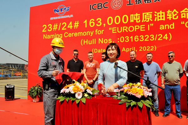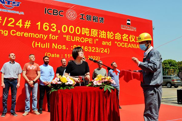希臘船東達能孔公司共訂制了五艘同類型163000噸原油船,今天命名的是該系列船中第三、四艘船舶。