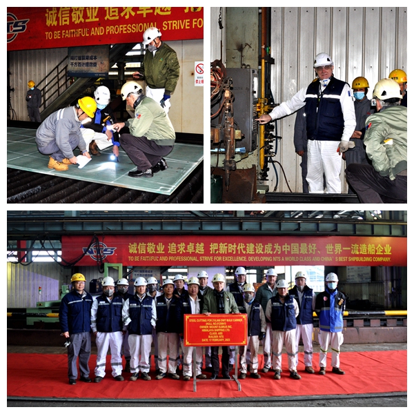 船東喜馬拉雅公司代表Davor Radic、船東Eastern Pacific Shipping Pte. Ltd.(EPS)公司代表倪杰分別與生產(chǎn)管理部負責人陳月鋒及相關(guān)部門代表出席活動,見證船舶工開建造。