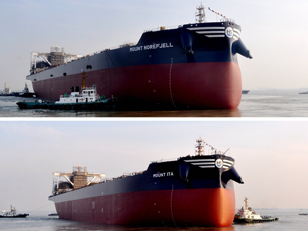 33#34#210000噸雙燃料動(dòng)力散貨船順利下水(圖)