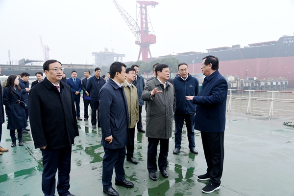 11月25日,中國商用飛機(jī)有限責(zé)任公司董事長、黨委書記賀東風(fēng)一行在泰州市市委書記史立軍、靖江市市委書記張長平等領(lǐng)導(dǎo)的陪同下,到公司參觀調(diào)研,公司董事長袁凱飛、副董事長朱炳康、黨委書記周燦榮一起陪同參觀介紹。