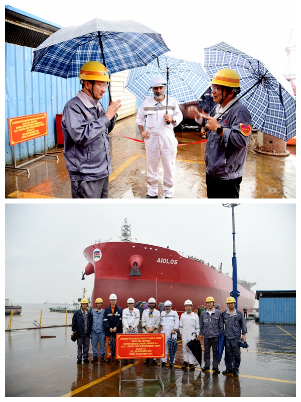On October 31, 2024, the launching of one 115,000 DWT Crude/Product Oil Tanker bearing builder's hull no.0311545 has been carried out successfully by New Times Shipbuilding Co., Ltd..The representatives from Capital Site Office, LR classification society and shipyard attended and witnessed the ceremony together.