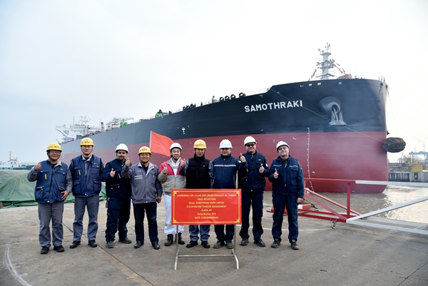 On December 3, 2024, the launching of one 113,500 DWT Crude/Product Oil Tanker bearing builder's hull no.0311550 has been carried out successfully by New Times Shipbuilding Co., Ltd. The representatives from Dynacom Site Office, BV classification society and shipyard attended and witnessed the ceremony together.