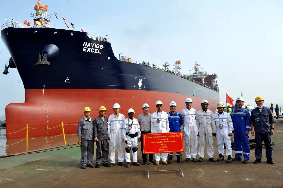 On September 28, 2023, the launching of one 50,000 DWT Product Oil/Chemical Tanker bearing builder's hull no. 0405046 has been carried out successfully by New Times Shipbuilding Co., Ltd.. The representatives from shipyard, N8 Site Manager Mr. Kumar together with the representatives from KR classification society attended and witnessed this event.