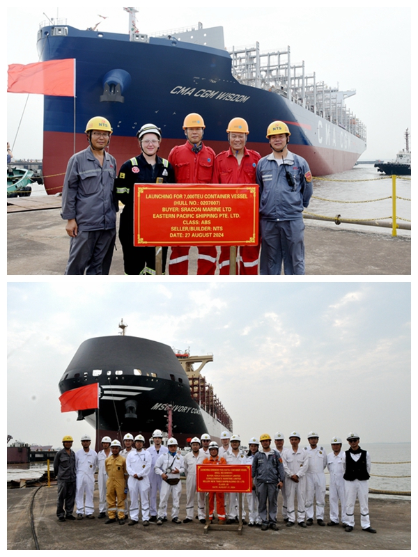 On August 26, 2024, the launching ceremony of one 7000 TEU Container Vessel bearing builder's hull no.0207007 and one 8100 TEU Container Vessel bearing builder's hull no.0208101 has been carried out successfully by New Times Shipbuilding Co., Ltd.