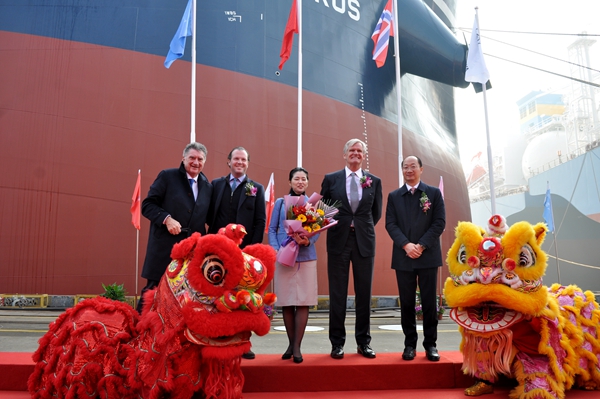 Godmother Mrs. Cristina Villarreal Fraile named the vessel 0120840 for "Mount Hua".