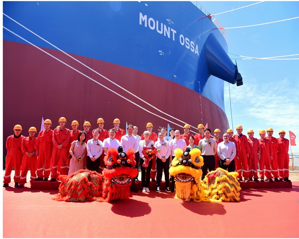 On 24 July, 2024, we held naming ceremony for one 210,000 DWT DF BULK CARRIER with Builder's Hull No. 0120850. Our CEO Mr. Liu Haijin, Executive Deputy General Manager Mr. Zhang Yuyong, Deputy General Manager & Executive Director Mr. Yuan Heng, EPS CEO Mr. Cyril Ducau, Head of Commercial Operations of RIO TINTO- Ms. Laure Baratgin, ABS Vice President, Greater China Operations-Mr. Paul Karam and other VIP guests attended this ceremony. Godmother Ms Laure Baratgin named the vessel for "MOUNT OSSA".
