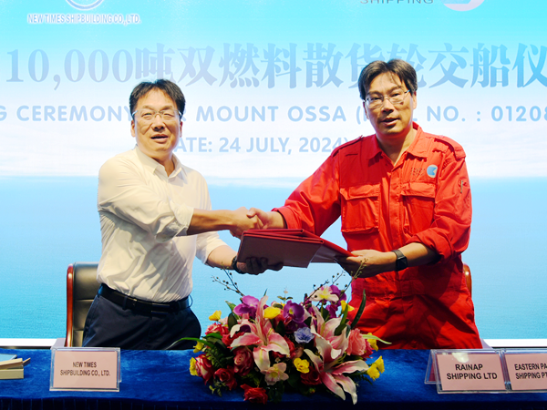 The closing ceremony was held at the meeting room on 8th floor of New Times Office Building. Our Executive Deputy General Manager Mr. Zhang Yuyong and owner's representative Mr. Ni Jie were present. The vessel was smoothly and successfully delivered by us and accepted by the Owner.