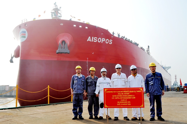 On August 14, 2024, the launching of one 115,000 DWT Crude/Product Oil Tanker bearing builder's hull no.0311544 has been carried out successfully by New Times Shipbuilding Co., Ltd..The representatives from Capital Site Office, LR classification society and shipyard attended and witnessed the ceremony together.