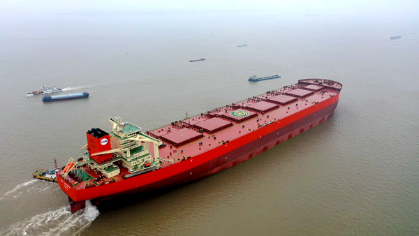 3月13日,公司建造的2#325000噸超大型礦砂船駛離公司碼頭,順利交付,這是自抗擊新冠肺炎疫情以來交付的首艘船舶。